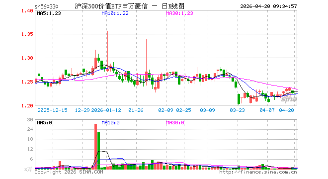 4月20日,沪深300价值ETF申万菱信(560330)开盘跌0.08%,报1.224元。沪深300价值ETF申万菱信(560330)重仓股方面,中国吉祥开盘跌0.09%,招商银行跌0.05%,好意思的集团跌0.32%,兴业银行涨0.11%,中信证券跌0.11%,工商银行涨0.00%,开云体育国泰海通涨0.35%,农业银行跌0.14%,交通银行跌0.14%,格力电器跌0.05%。