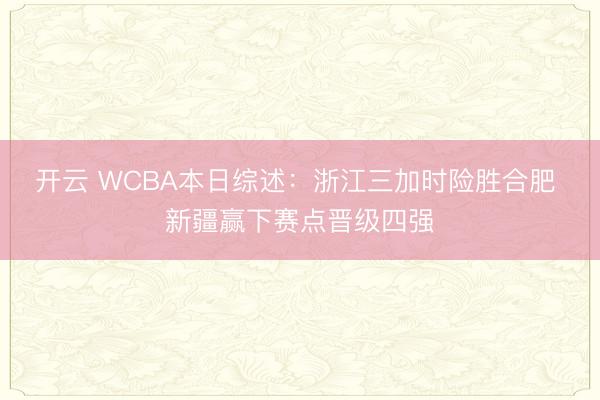 开云 WCBA本日综述:浙江三加时险胜合肥 新疆赢下赛点晋级