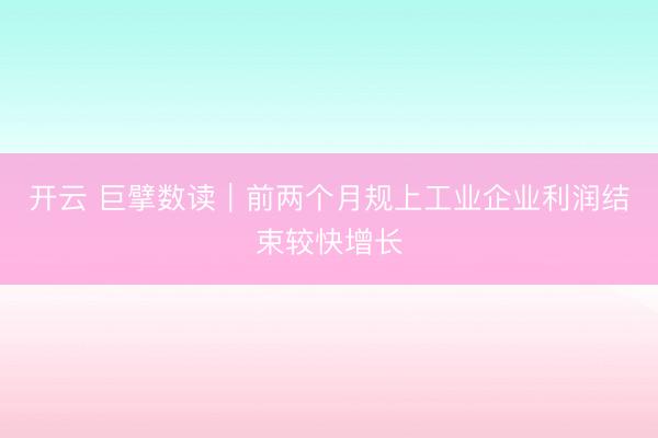 开云 巨擘数读|前两个月规上工业企业利润结束较快增长
