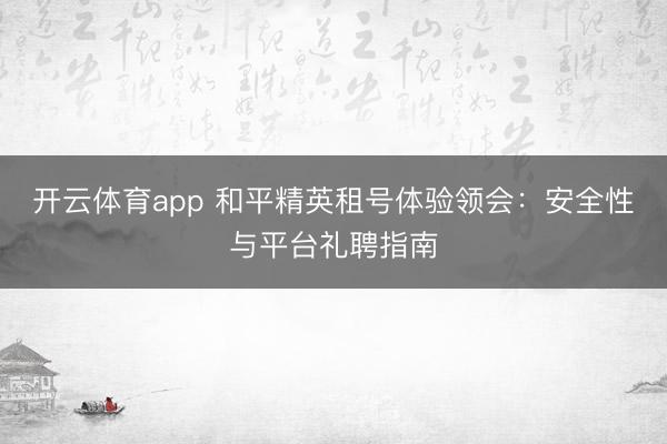 开云体育app 和平精英租号体验领会:安全性与平台礼聘指南