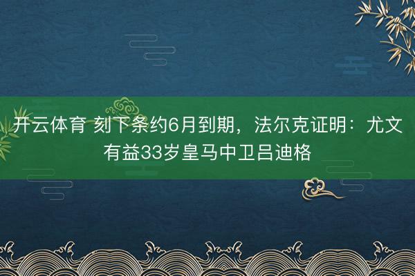 开云体育 刻下条约6月到期,法尔克证明:尤文有益33岁皇马中