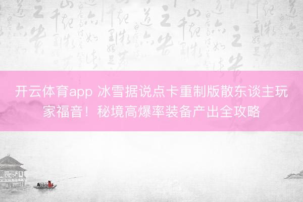 开云体育app 冰雪据说点卡重制版散东谈主玩家福音!秘境高爆
