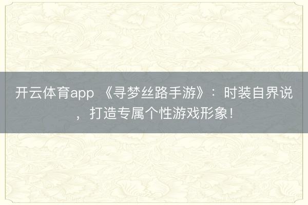 开云体育app 《寻梦丝路手游》:时装自界说,打造专属个性游