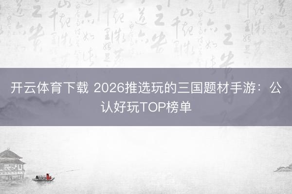 开云体育下载 2026推选玩的三国题材手游:公认好玩TOP榜