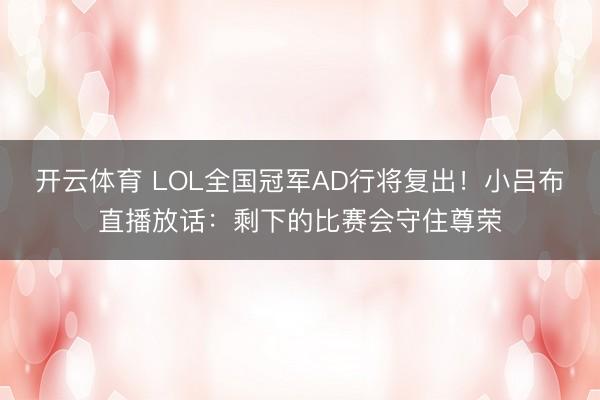 开云体育 LOL全国冠军AD行将复出!小吕布直播放话:剩下的