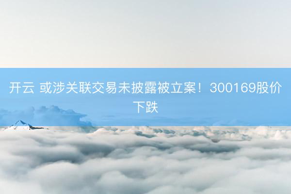 开云 或涉关联交易未披露被立案!300169股价下跌