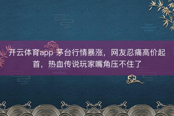 开云体育app 茅台行情暴涨,网友忍痛高价起首,热血传说玩家