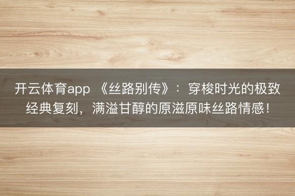 开云体育app 《丝路别传》:穿梭时光的极致经典复刻,满溢甘