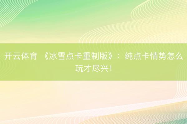 开云体育 《冰雪点卡重制版》:纯点卡情势怎么玩才尽兴!