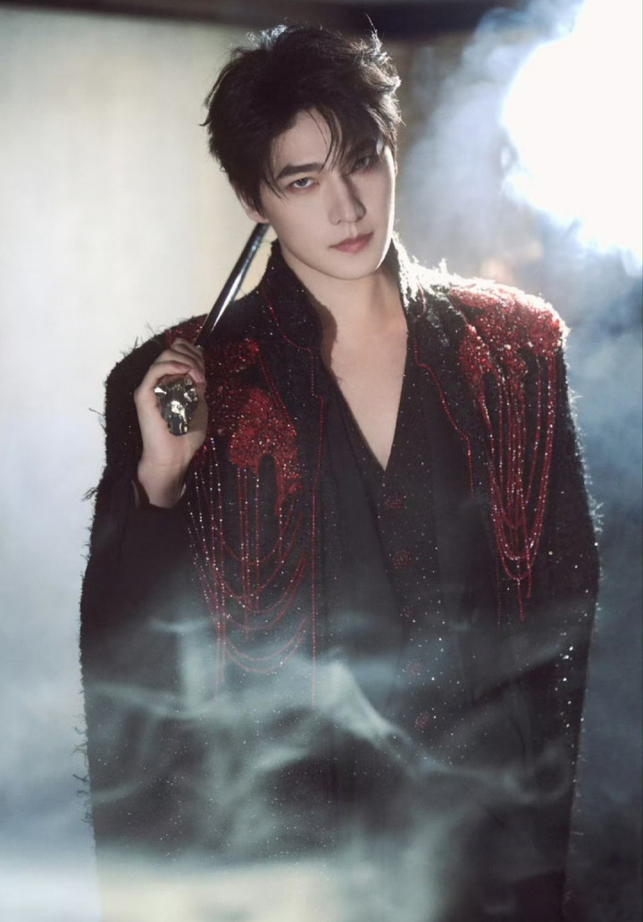 此次造型的“颠覆性”源于杨洋对自身风格的突破。从早期《微微一笑很倾城》中的阳光校草,到《你是我的荣耀》里温柔深情的航天工程师,他始终以“清爽少年感”为标签。而此次写真中,他以冰蓝色美瞳剥离人类温度,纯黑礼服上点缀猩红刺绣,权杖、烟雾与流苏配饰的加入,将中世纪吸血鬼伯爵的神秘优雅与危险魅力完美融合。动态视频中,他侧眸凝视、流苏摇曳的细节,更被粉丝形容为“魅魔低语”,直呼“建模级神颜”突破了人类审美框架。