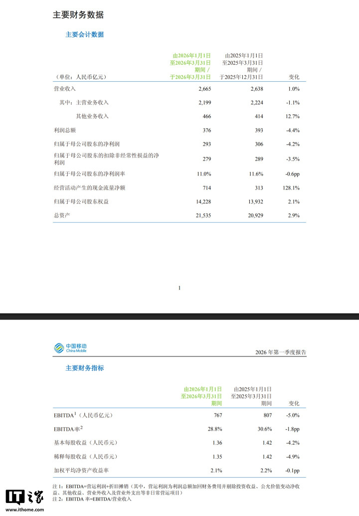 财务见解方面,EBITDA为767亿元,同比下落5.0%,EBITDA率为28.8%,同比下落1.8个百分点;基本每股收益为1.36元,同比下落4.2%;稀释每股收益为1.35元,同比下落4.9%;加权平均净金钱收益率为2.1%,同比下落0.1个百分点,合座盈利质料和答复水平略有下滑。