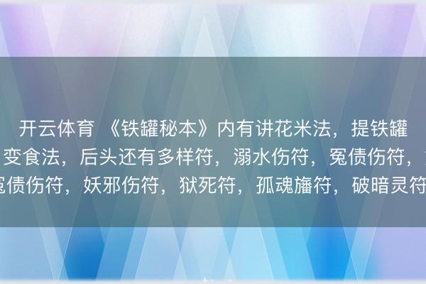 开云体育 《铁罐秘本》内有讲花米法,提铁罐,聚魂法,倒台大法