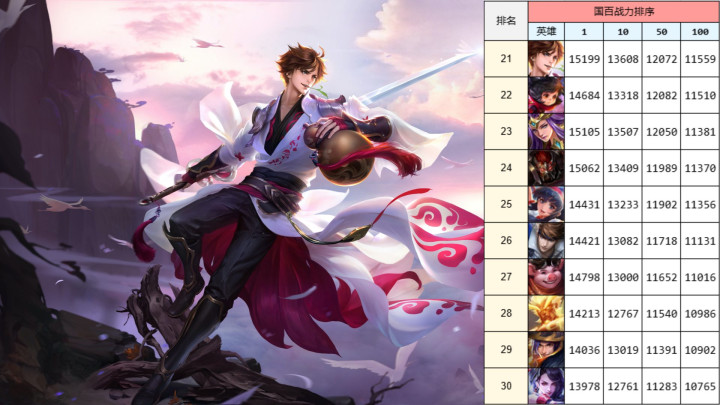 21到30名,基本上能看到的王人是冷门,和上边的名单致使王人有特别大的差距,但我说的这个冷门并非是英杰冷门,而是高端局中少量能见到。