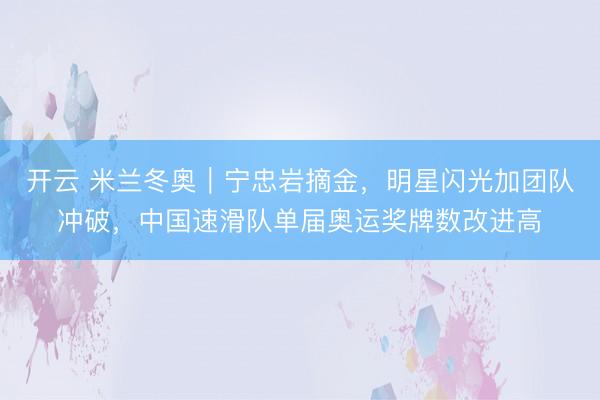 开云 米兰冬奥|宁忠岩摘金,明星闪光加团队冲破,中国速滑队单