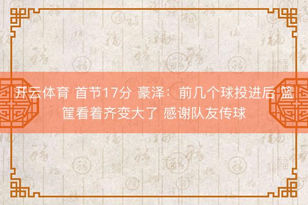 开云体育 首节17分 豪泽:前几个球投进后 篮筐看着齐变大了