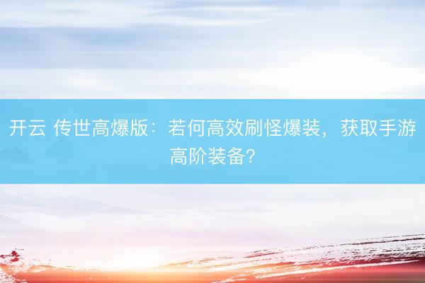 开云 传世高爆版:若何高效刷怪爆装,获取手游高阶装备?