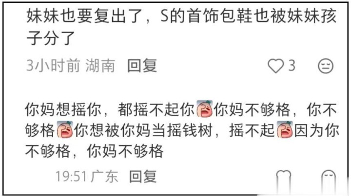 她的待遇亦然打了S家的脸,前锋圈一向敬重星二代,小S儿子拿不到品牌待遇,意味着小S在前锋圈毫无地位,这个地位不光是指明星咖位,更是指蹧跶品级。