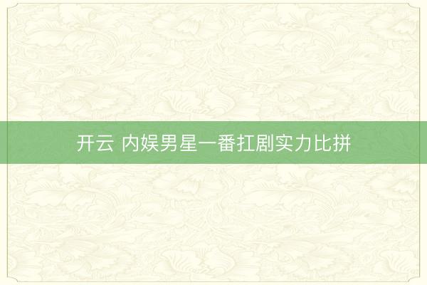开云 内娱男星一番扛剧实力比拼