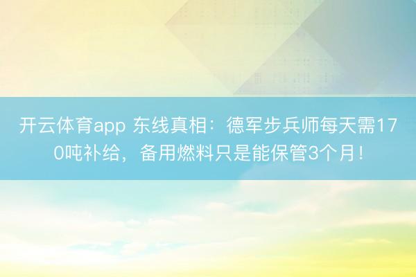 开云体育app 东线真相:德军步兵师每天需170吨补给,备用