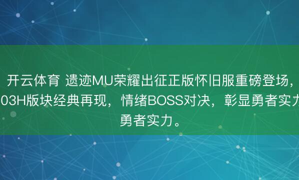 开云体育 遗迹MU荣耀出征正版怀旧服重磅登场,1.03H版块