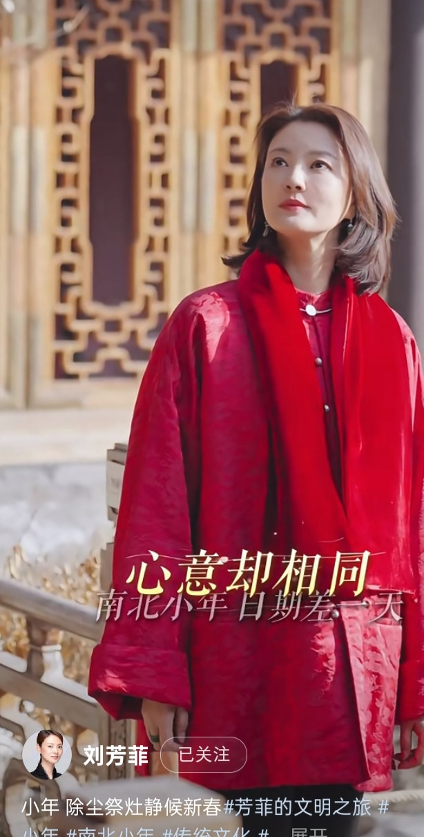 开云体育app 刘芳菲红色中式上衣配红围巾讲解南北小年的差别, 知性又优雅