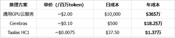 一家叫Taalas的加拿大公司,把Llama3.18B的推理本钱打到了0.75好意思分/百万token。