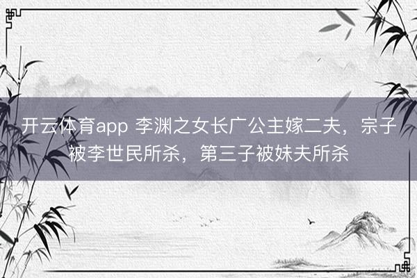 开云体育app 李渊之女长广公主嫁二夫,宗子被李世民所杀,第