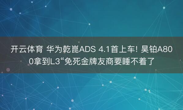 开云体育 华为乾崑ADS 4.1首上车! 昊铂A800拿到L