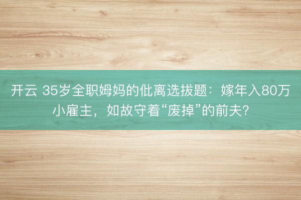 开云 35岁全职姆妈的仳离选拔题:嫁年入80万小雇主,如故守
